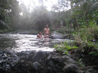 Nah persis habis jalan menurun dari pertigaan menuju Bongkasa .... sampailah kita di sungai tempat satakan akan berendem. Sungai ini tepatnya ada di wilayah Banjar Tohpati, Bongkasa, ... sehari-harinya dipakai sebagai tempat rafting, ... dan karena airnya cukup bersih... makanya masih banyak dipergunakan sebagai permandian umum.